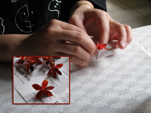 IMG_1899_Lores Published 2009/08/29 at 504 × 378 in Malaysians bearing gifts ← Previous Next → Gluing 5 triangles together – to get a bloom