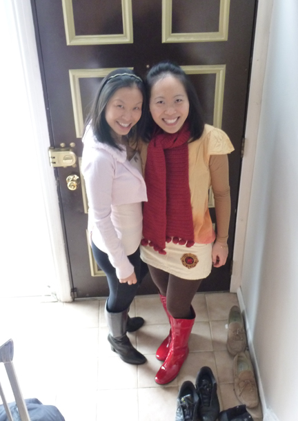 After wasting my entire morning trying to catch another glimpse of WLH, we finally had to prep to go into the city. All dressed up, we decided to take our traditional family picture before leaving the house on the first day of New Year. My younger sister and parents are missing from the picture. 😦 Hubs was not particularly happy that we were cam whoring. Cheh was dressed in pink (like she was 2) and I were in an assortment of red and orange hues (a little ah neh but what the hey! It’s CNY!!).