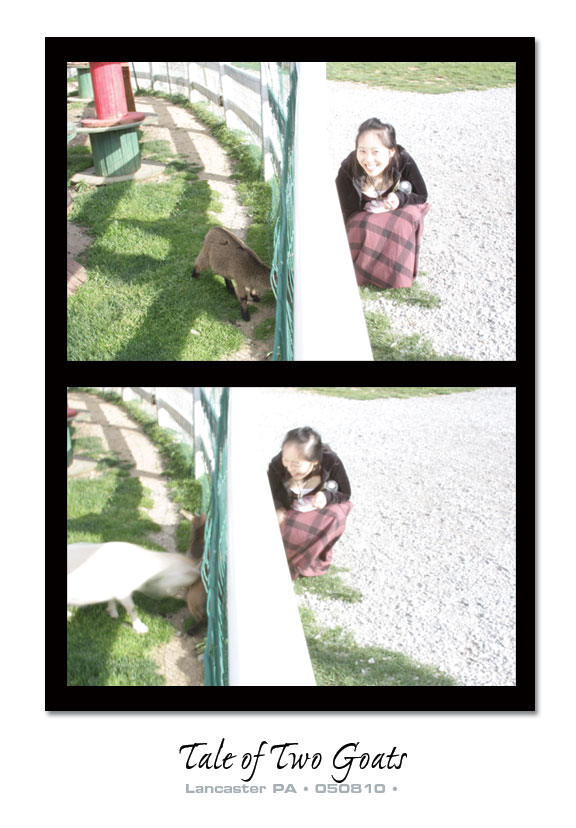 They told us they were originally from Bergenfield, moved to South of Jersey, proceeded to out west to Utah and finally ended up in Pennsylvania. I couldn’t let myself hog all the fun with these nice people, so I called hubs out from the car to “touch” the kid goat too. We finally left, and the moment we got into the car, we pulled out the hand-sanitizer. City kids.