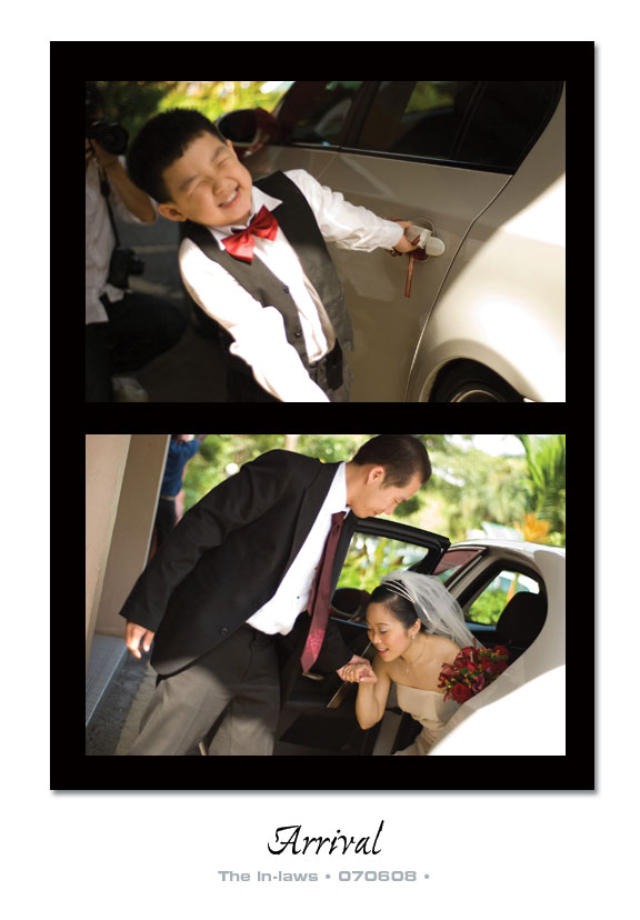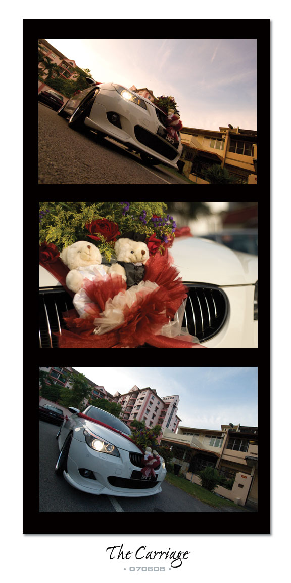 After that, my entourage went to the groom’s home to repeat the tea ceremony with his family. We actually got lost, as my chauffeur tried to maneuver his way around Cheras. At one point, Kenneth had ask my friend to slow down so that he could take pictures of us in the moving car. My friend’s reply, “Any slower and I would put this sports car to shame.”