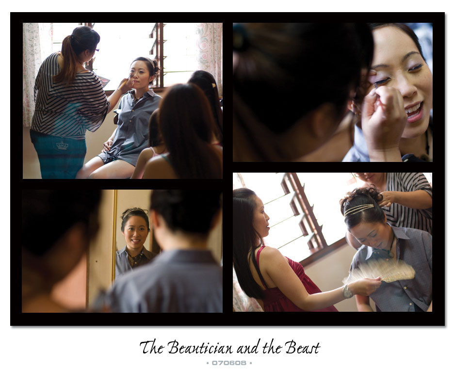 She was shocked to see my bags, and worried that I haven’t been sleeping. She got to work right away. As she curled, gelled, brushed, powdered and swirled me, I heard my uncles and aunts slowly arriving. Even Kenneth and his assistant came in the nick of time, as my friends from school, whom I have not seen for ages, all started strolling into the room one by one. As the morning went on, the chatter downstairs grew louder and louder, adding to the festivities and excitement of the first wedding of the Phoa family.