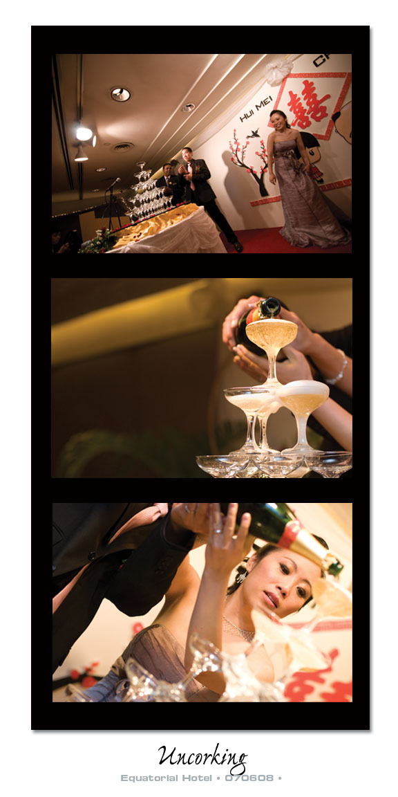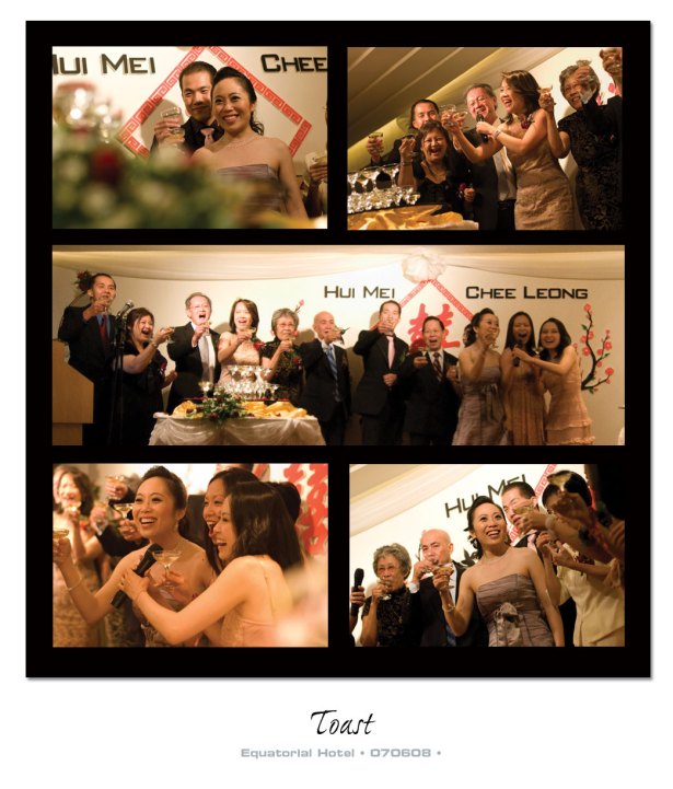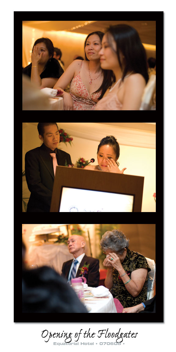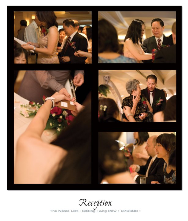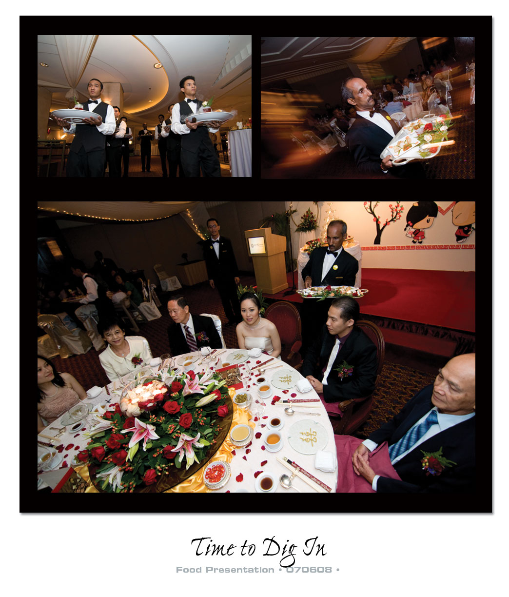 After a year of chiseling out the details with hotel staffs and family members we were down to the wire in the last 2 months trying to figure out the last minute “stuffs”. It was the last minute things that almost broke the camel’s back. It took me two weekends to design the backdrop and LCD screen image, but took us up to the 11th hour to get the hotel to agree to the set up I wanted. It seems my designs were too complicated. But in the end, because I weren’t “around” to “see the layout,” Mary stepped in and agreed to do the backdrop FOC. Then there was the seating arrangements. Don’t let the, “Anything is ok” line fool you. After I corrected seating arrangements for 200+ people for the 10th time, SUDDENLY, it’s NOT OK for person X to be seated with person Y. I almost had a nervous breakdown.
