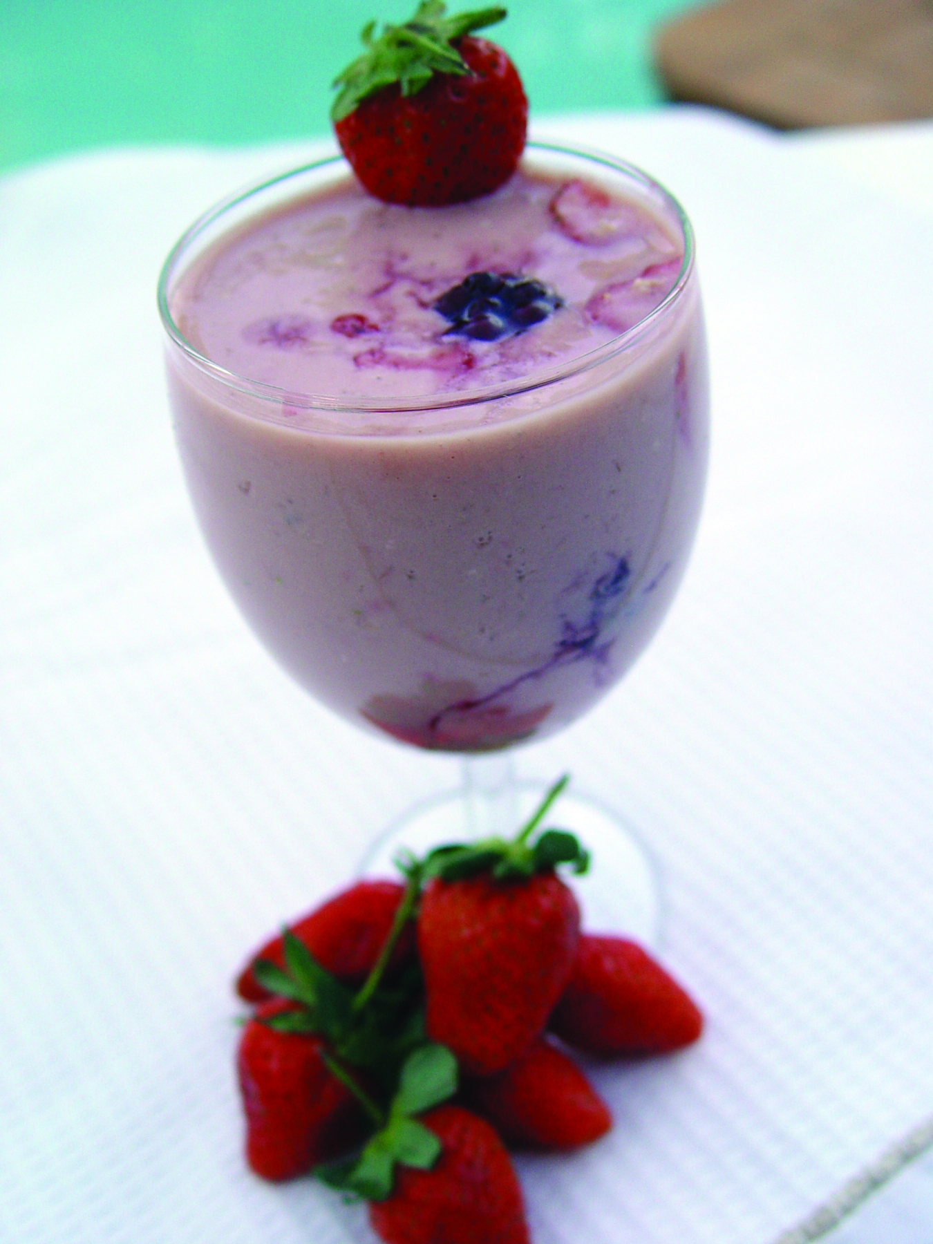 A handful of frozen berries (strawberry or blueberries or raspberry or blackberry OR mix them ALL!)