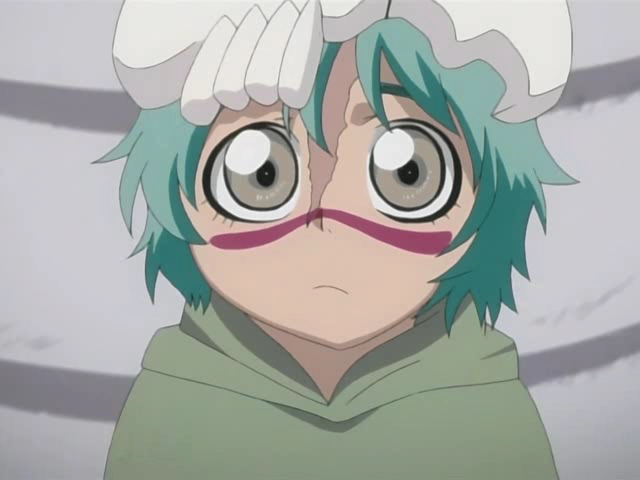 In Hueco Mundo, Sousuke Aizen (ex-5) creates Wonderweiss Margera, a small, child-like and even autistic Espada-level arrancar. He follows Kaname Tousen (ex-9) around and is hostile towards Tousen’s enemies. The Espada are gathered for a mission. Luppi (temp-6), Grimmjow (ex-6), Yammy [(10) (0)] and Wonderweiss enter Karakura Town. Ichigo takes on Grimmjow with his hollow mask, but because his limit is only 11 second, Grimmjow uses this to his advantage. Grimmjow nearly kills Ichigo, but for Rukia’s timely appearance. In time, she too becomes the victim until Hirako Shinji (ex-ex-5) steps in. With his hollow mask, Shinji quickly disarms Grimmjow.