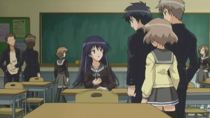 Unfortunately for the group, the other friends’ lives seem to unravel too. Shuusuke and Shuri has a step-mom who despises them, and fools around with other men. As a city councilman, their father is constantly making sure that the family portrays a good image for the society. Shuri starts a petition against her own father’s proposal of tearing down the city’s park to build city hall over it. Immediately, she gets called in to the principal’s office and later gets a trashing from her father. She cries alone, but Shuusuke promises to protect her. During their yearly visit to their mother’s grave, the siblings entrust their fears to each other and even strengthen their bond by giving each other a hand-tied blessed bracelet. The next day, they are called into the principal’s office again, this time with a letter accusing the twins of having an incestuous relationship. Shuri is visible shaken, but for their home room teacher, Fujimura Yuzuki, standing up for them. After clearing up the mess, they return to class only to have a crude drawing of the twins on the blackboard. Shuri runs away immediately. That night, their father immediately screams bloody murder for the rumors that are spreading like wild fire. He decides to send Shuri off to London to separate the twins and to stop the rumors of the twins being lovers. Shuusuke promises her then, that they will never be separated ever.