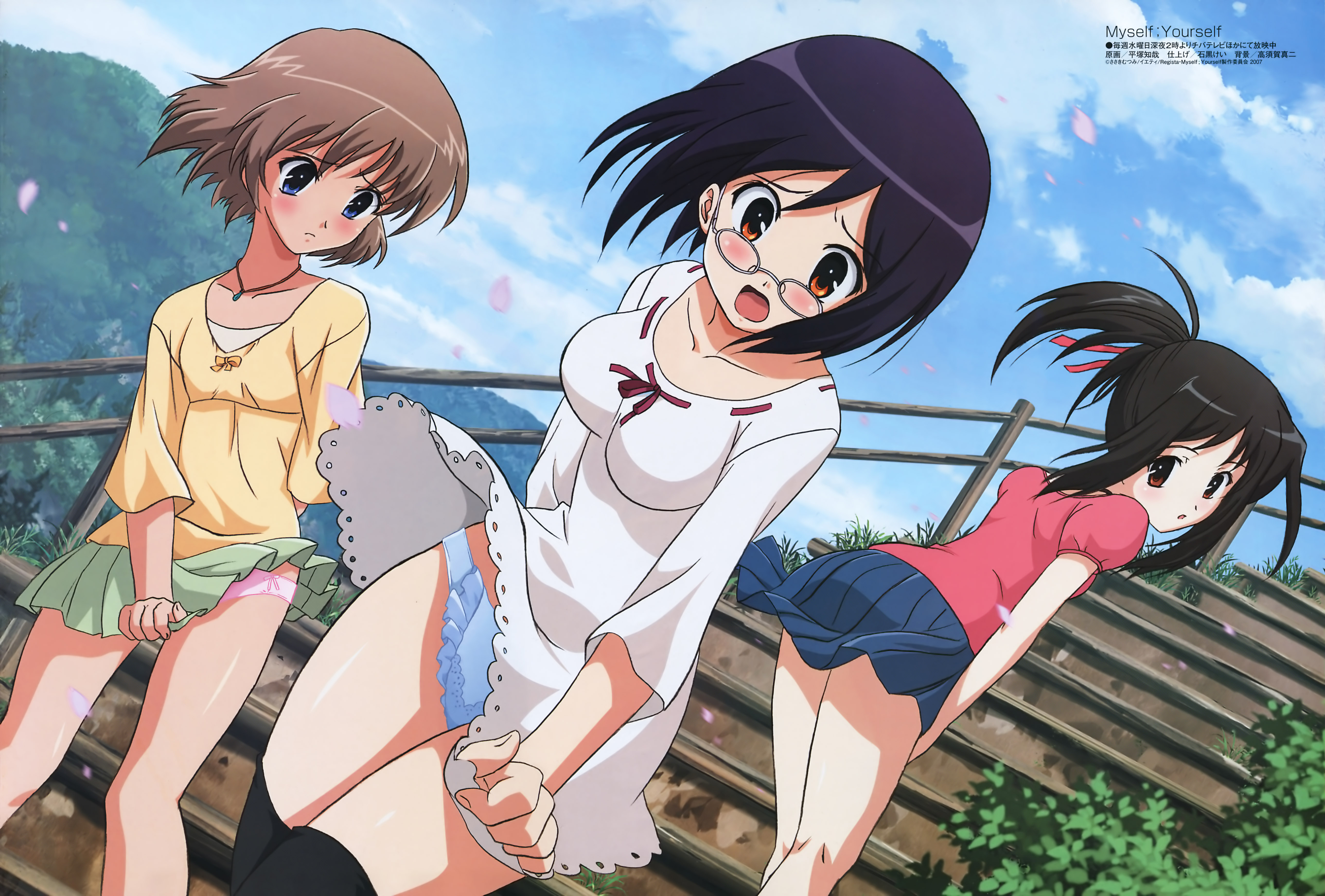 Myself; Yourself was released on Dec. 20, 2007 as a game developed by Yeti for PlayStation 2. It is an original game published by Regista, and the character design is furnished by Mutsumi Saski. It was based off of a light novel written by Nakazawa Takumi and illustrated by Wadapen, serialized between March and November 2007. Each of the six-chapter novel is based on the six heroines: Nanaka (Seven Children), Aoi (The Lost Child Aoi-San), Shuri (Me and Him, My Friend), Yuzuki (Close Encounter), Hinako (A Small and Large First Step) and Asami (What Thing Did You Lose?). It was later adapted to anime and aired on October 3, 2007 until December 26, 2007 with 13 episodes. A sequel game for PlayStation 2 was released on May 28, 2009 entitled Myself; Yourself: Sorezore no Finale.