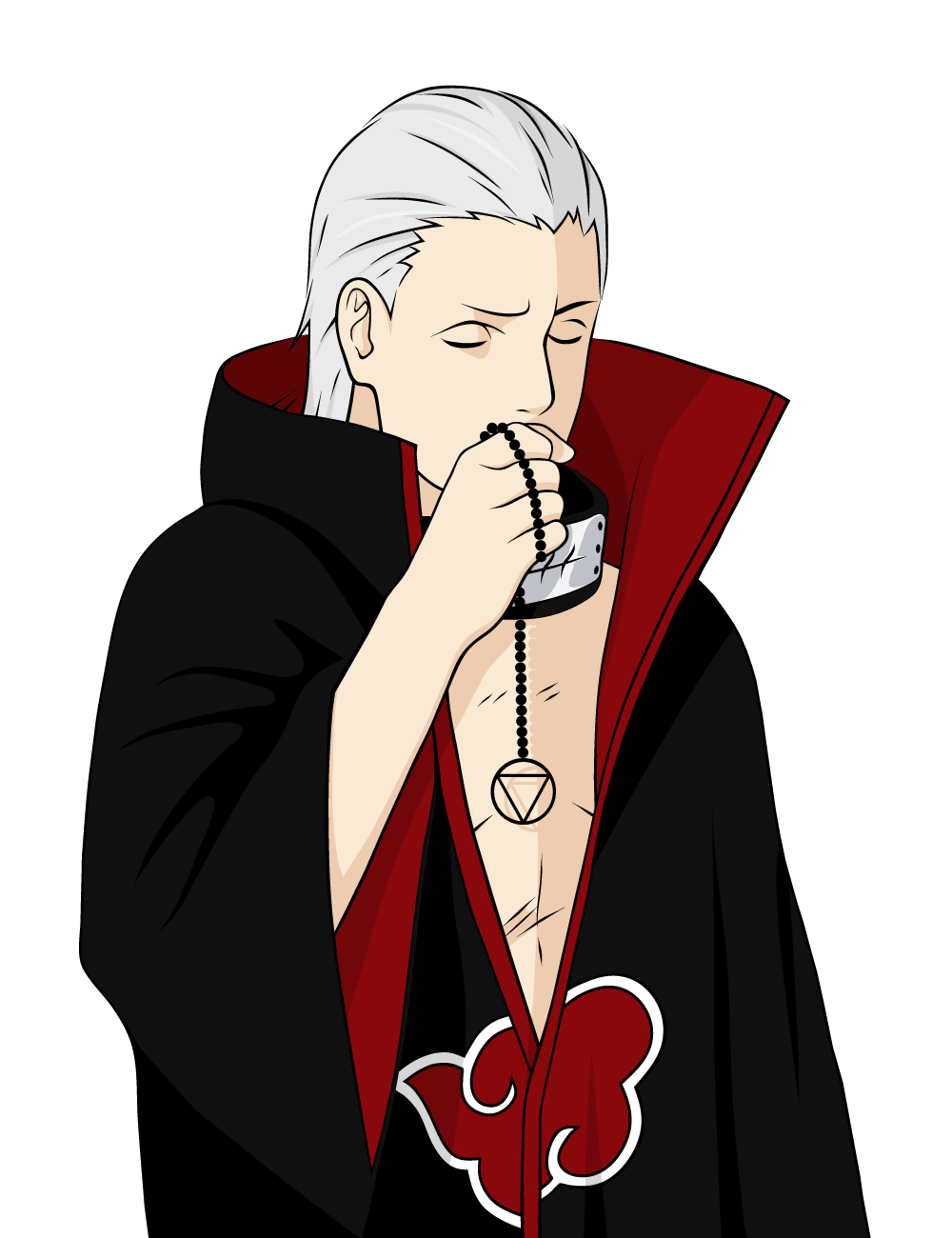 Konan’s ring is worn on her middle right finger with the kanji 白 (bya, “white”) inscribed on it. She is the lone female Akatsuki member. She uses her talent with Origami to make it her fighting style. Konan possesses the ability to disperse her body into paper, which then folds into butterflies used for tracking. Together with Pain and another friend, Yahiko, the three were trained by Jiraiya, when they were but children, to become stronger to fend for themselves in the war-torn Amegakure.