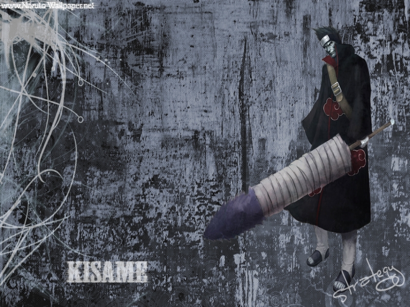 Hoshikage Kisame originates from the Mist Village, Kirigakure, and the Seven Swordsmen of the Mist. He committed murder and rebellion there before joining Akatsuki. Kisame wields the sword Samehada, sharkskin, a living weapon covered in scales that absorbs an opponent’s chakra. Suigetsu, Sasuke’s teammate, has his eye on this stately sword.