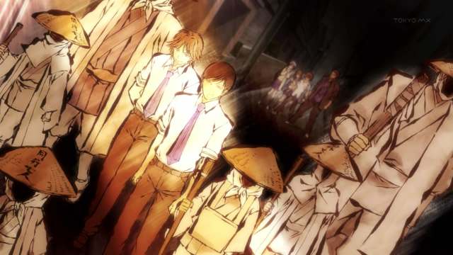 Quickly, Rikou calls a meeting, dispersing his men to protect the shrines around the area. In the mean time, Kiyotsugu has found a clue. Looks like the attacks of the shrine forms a spiral circle. Kiyotsugu knows where the next attack will be. Together with Shima, they head to the next plausible target.