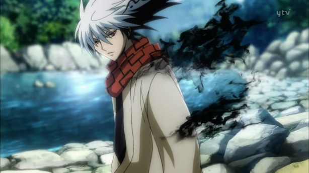 Ryuuji attacks his own sister with his word play (not his wolf). He warns her that she will die if she doesn’t return with him. But Night Rikou appears. He protects and saves Yura from her own brother.