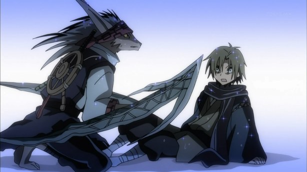 Everyone is putting their trust in Rikou to return to Kyoto, to face off with Tsuchigumo and retrieve Yuki-Ona. Meanwhile, the ransomed Yuki-Ona reasons that her existence is putting on burden on her young master. If so, she should just end her miserable existence. But Rikou arrives with his Hyakki Yakou to stop her. He doesn’t need her protection, but her trust and strength. As she releases her fear, he absorbs it and performs his second Matoi with her.