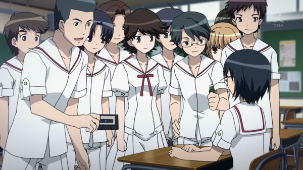 The main protagonist of the series is Kuzumi Hiroshi, or Hiro-Kun as called by Tsumuhana Isuzu. He is also called Hakase (Professor) by Asagiri Kaname as the kanji of his name can also be read as that. Hiro’s family recently moved to the city of Jouga for his father’s research on his latest occult novel. The new town is mysteriously separated into new and old city by a river. Even though he is new in town, many people, including his classmates are drawn to him, all except class committee member and what seems to be like the leader of the pack, Kushinada Nemuru. Like his classmates, Hiro is only 15 years old and quite unworldly and naive. He has a younger sister, Mana, who is paralyzed from the waist down, from an earlier accident.