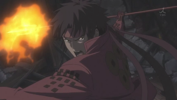 Realizing that Fuuma is only after the katana, Sasuke hurls the sword away. With that, Kojuurou and Sasuke manages to escape. At they leave, Kojuurou hears Chousokabe’s men yelling in the cells below them, and releases them. They begin fighting the Toyotomi army to avenge their master.